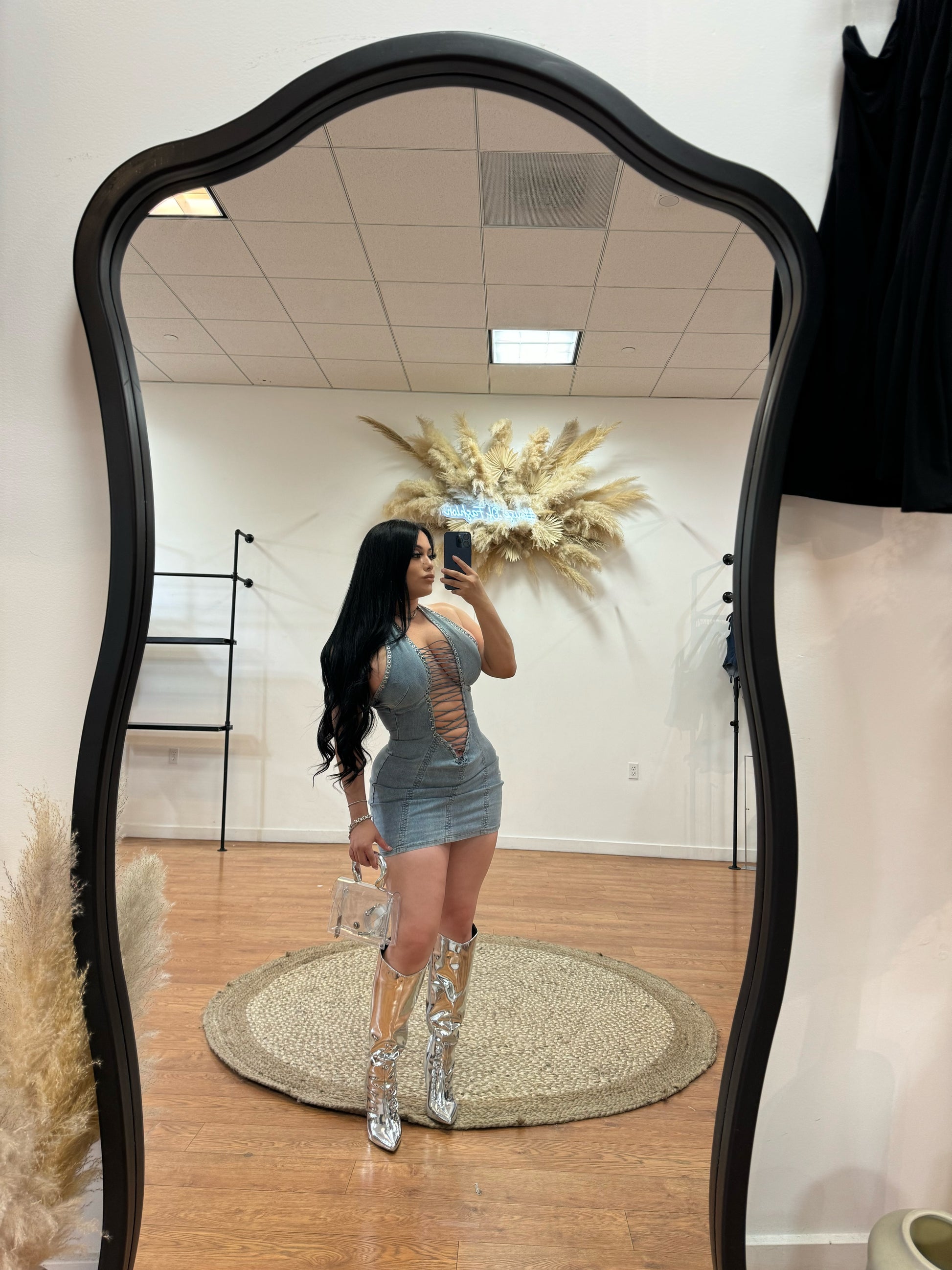 La Mala Sexy Halter Dress -Denim Blue